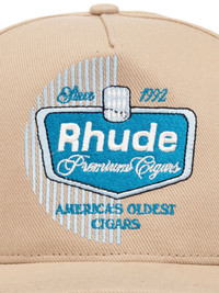 Cigaro embroidered cap Highlights - Light beige/blue - Cotton - Embroidered logo to the front - Curved peak - Five-panel construction - Eyelet vents - Adjustable strap to the rear Made in United States Composition Cotton 100% SIZE & FIT Measurement BRIM 2.5 in(6.3 cm)