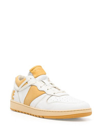 colour-block low-top sneakers white/mustard yellow leather colour-block panelled design logo print to the rear front lace-up fastening round toe flat rubber sole Made in Italy Composition Lining: Leather 100% Outer: Leather 100% Sole: Rubber 100% SIZE & FIT Measurement HEEL 1.18 in(3 cm) Sole height 0.59 in(1.5 cm)