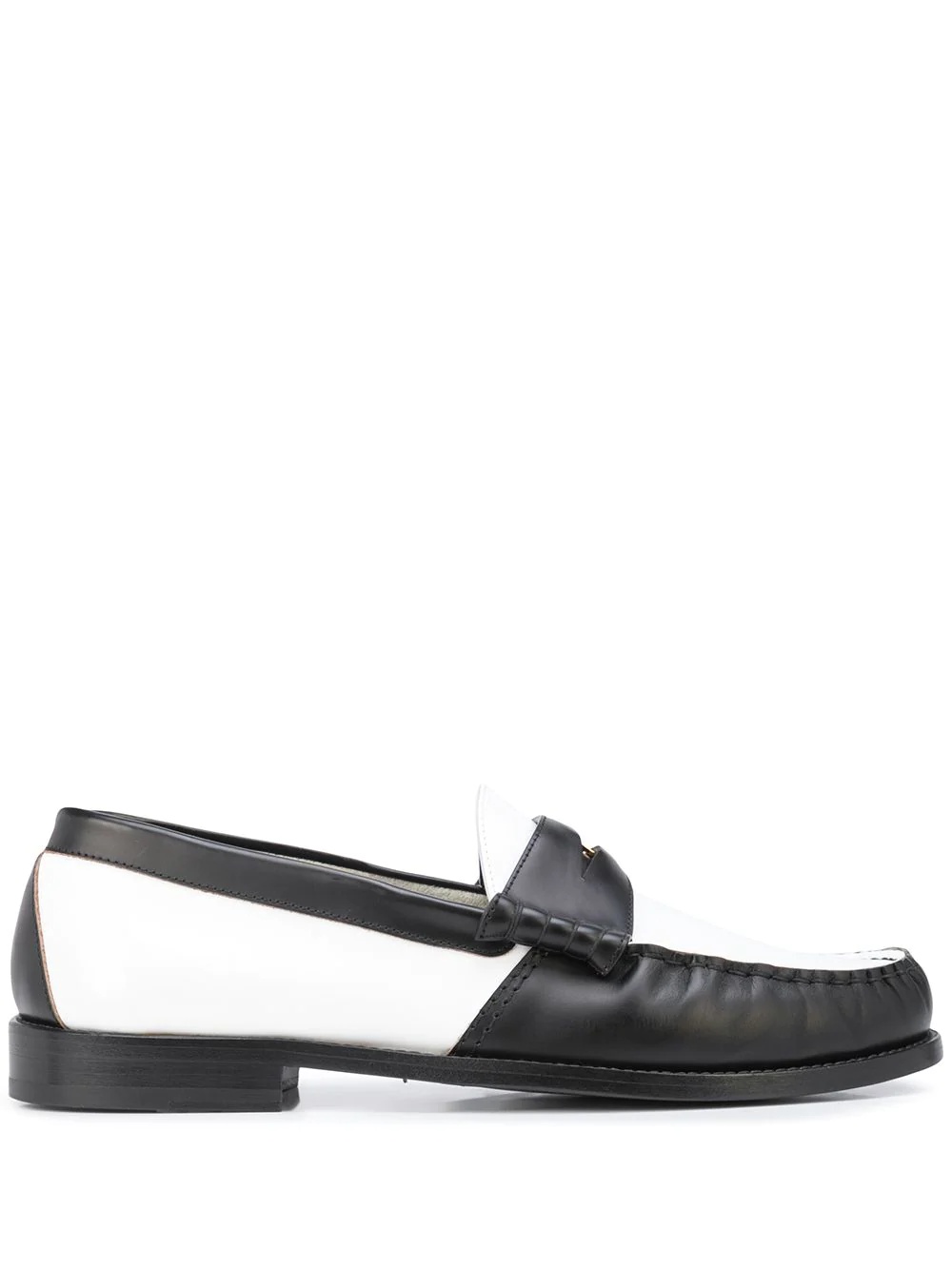 colour-block penny loafers black/white leather gold-tone hardware colour-block design almond toe penny slot branded insole flat rubber sole Made in Italy Composition Outer: Leather 100% Sole: Leather 100% Inner: Leather 100%