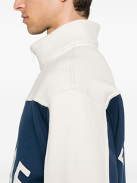 Contrast Varsity cotton sweatshirt Highlights - Cream white/blue - Cotton - Jersey texture - Two-tone design - High neck - Long sleeves - Ribbed cuffs and hem - Embroidered logo to the front - Embroidered slogan to the rear - Straight hem - Short front zip fastening Made in United States Composition Outer: Cotton 100% Lining: Lyocell 100% SIZE & FIT Model measurements Height 6 ft 2 in(1.87 m) Bust/Chest 36.22 in(92 cm) Hips 35.43 in(90 cm) Waist 29.13 in(74 cm) FittingInformation Designed for a relaxed fit, this piece allows for comfort and movement when worn The ribbed hem offers a close, comfortable fit Made from a midweight non-stretch fabric, this piece offers minimal elasticity when worn This piece fits true to size – take your usual size Measurement CHEST 44.01 in(111.8 cm) LENGTH 24.48 in(62.2 cm) WAIST 40 in(101.6 cm) SLEEVE LENGTH 22.99 in(58.4 cm) Shoulder Width 21.49 in(54.6 cm) Washing instructions Dry Clean Only