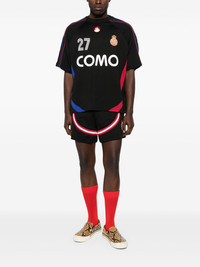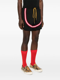 cotton-blend track shorts Highlights - Black/white/red - Elasticated drawstring waistband - Two side zip-fastening pockets - Stripe detailing Made in United States Composition Cotton 63%, Rayon 37% SIZE & FIT Model measurements Height 6 ft 0 in(1.84 m) Bust/Chest 35.82 in(91 cm) Hips 37 in(94 cm) Waist 28.34 in(72 cm) FittingInformation Designed for relaxed fit, offering a comfortable loose fit over the leg The elasticated waist allows for a comfortable fit Made from a midweight non-stretch fabric, this piece offers minimal elasticity when worn Washing instructions Dry Clean Only