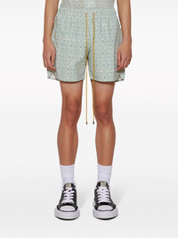 Cravat-print swim shorts Highlights - Teal green/ivory white - Geometric print - Mid-rise - Elasticated drawstring waistband - Be mindful to try on swimwear over your own garments. Made in United States Composition Nylon 100%