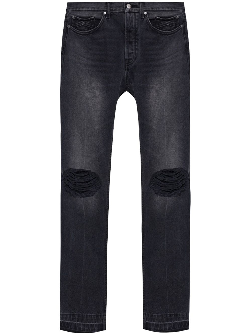 distressed jeans Highlights - Black - Cotton - Denim - Distressed effect - Concealed fly and button fastening - Mid-rise - Belt loops - Classic five pockets - Straight leg Made in United States Composition Cotton 100%