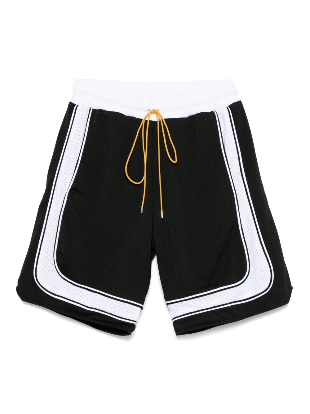 drawstring track shorts Highlights - Black/white - Elasticated drawstring waistband - Slip pockets to the sides - Contrasting border Made in United States Composition Polyester 100% SIZE & FIT Model measurements Height 6 ft 0 in(1.84 m) Bust/Chest 35.82 in(91 cm) Hips 37 in(94 cm) Waist 28.34 in(72 cm) FittingInformation Designed for relaxed fit, offering a comfortable loose fit over the leg The elasticated waist allows for a comfortable fit Made from a midweight non-stretch fabric, this piece offers minimal elasticity when worn Washing instructions Dry Clean Only