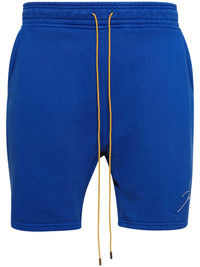 drawstring track shorts Highlights - Cobalt blue - Cotton - Terry-cloth effect - Drawstring fastening waist - Two side slit pockets - Logo print to the side - Rear patch pocket - Above-knee length Imported Composition Cotton 100% Washing instructions Dry Clean Only