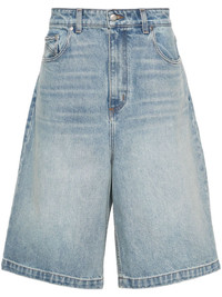 drop-crotch denim shorts Highlights - Indigo blue - Cotton - Denim - Whiskering effect at the thighs - Logo patch to the rear - Belt loops - Front button and zip fastening - Drop crotch - Classic five pockets - Straight hem - Knee-length Made in United States Composition Lining: Polyester 65%, Cotton 35% Outer: Cotton 100% SIZE & FIT Model measurements Height 6 ft 2 in(1.87 m) Bust/Chest 36.22 in(92 cm) Hips 37 in(94 cm) Waist 27.95 in(71 cm) FittingInformation Designed with a wide leg, offering a loose and roomy fit Sturdy and hard-wearing, this denim piece offers no stretch This piece fits true to size – take your usual size