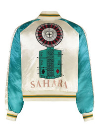 embroidered bomber jacket Highlights - White - Front two-way zip fastening - Two side slit pockets - Applique detailing - Striped border Made in United States Composition Polyester 100%