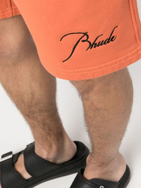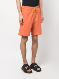 embroidered-logo cotton track shorts Highlights - Light orange - Cotton - Embroidered logo at the leg - Above-knee length - Mid-rise - Elasticated drawstring waistband - Two side slit pockets - Rear patch pocket Made in United States Composition Cotton 100% SIZE & FIT Model measurements Height 6 ft 1 in(1.86 m) Bust/Chest 36.61 in(93 cm) Hips 37 in(94 cm) Waist 28.74 in(73 cm) FittingInformation Designed for relaxed fit, offering a comfortable loose fit over the leg Adjust this piece’s waistband to your preference using the drawstring Made from a midweight non-stretch fabric, this piece offers minimal elasticity when worn This piece fits true to size – take your usual size Washing instructions Machine Wash