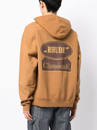 graphic-print hoodie camel brown cotton logo print at the chest graphic print to the rear round neck long sleeves Made in United States Composition Cotton 100% SIZE & FIT Model measurements Height 6 ft 2 in(1.87 m) Bust/Chest 34.25 in(87 cm) Hips 36.22 in(92 cm) Waist 29.52 in(75 cm) Measurement SLEEVE LENGTH 25.19 in(64 cm) LENGTH 25.59 in(65 cm) Shoulder Width 25.98 in(66 cm) FittingInformation This piece fits true to size. We recommend you get your regular size Cut for an oversized fit Made with a mid-weight fabric Washing instructions Machine Wash