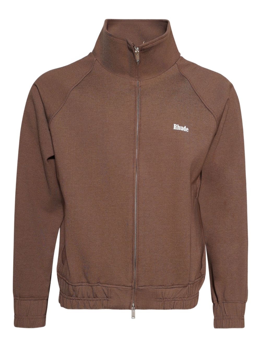 Hampton zip-up track jacket Highlights - Brown - High collar - Logo embroidery - Zip closure - Contrasting side stripes - Ribbed cuffs Imported Composition Polyester 100%