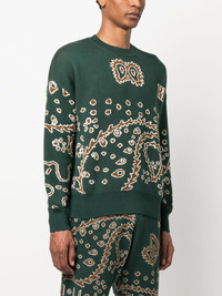 intarsia-knit jumper forest green cotton-cashmere blend intarsia knit crew neck long sleeves ribbed cuffs and hem Imported Composition Supima Cotton 85%, Cashmere 15% SIZE & FIT Model measurements Height 6 ft 2 in(1.87 m) Bust/Chest 37 in(94 cm) Hips 33.85 in(86 cm) Waist 27.95 in(71 cm) Measurement CHEST 45.66 in(116 cm) SLEEVE LENGTH 20.07 in(51 cm) Shoulder Width 22.83 in(58 cm) LENGTH 22.83 in(58 cm) FittingInformation Designed for a relaxed fit, this piece allows for comfort and movement when worn Made from a midweight non-stretch fabric, this piece offers minimal elasticity when worn This piece fits true to size – take your usual size Washing instructions Dry Clean Only