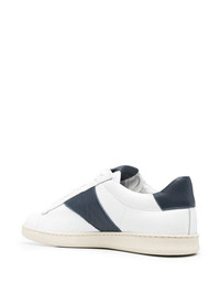 leather low-top sneakers white/steel blue calf leather embossed logo to the side logo patch at the tongue side stripe detailing contrasting heel counter panelled design round toe front lace-up fastening flat rubber sole Made in Italy Composition Sole: Rubber 100% Outer: Calf Leather 100% Lining: Calf Leather 100% SIZE & FIT Measurement HEEL 0.98 in(2.5 cm)