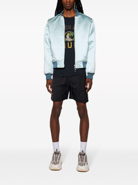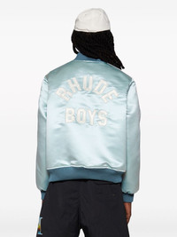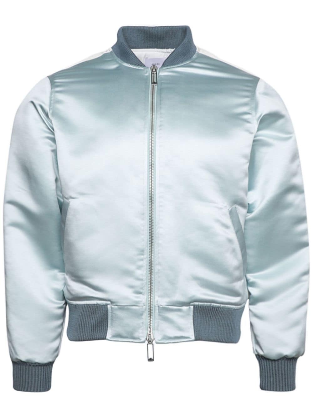logo-applique satin bomber jacket Highlights - Mint green - Satin - Applique logo - Ribbed band collar - Two-way zip fastening - Long sleeves - Side pouch pockets - Straight hem - Ribbed trim Imported Composition Satin 100% Washing instructions Read Manufacturer Guidelines