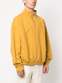 logo-emboridered quarter-zip sweatshirt mustard yellow cotton embroidered logo at the chest embroidered logo to the rear seam detailing short front zip fastening high neck long sleeves straight hem Made in United States Composition Cotton 100% SIZE & FIT Model measurements Height 6 ft 4 in(1.92 m) Bust/Chest 37.4 in(95 cm) Hips 37.4 in(95 cm) Waist 30.7 in(78 cm) FittingInformation This piece fits true to size. We recommend you get your regular size Cut for a loose fit Made with a mid-weight fabric
