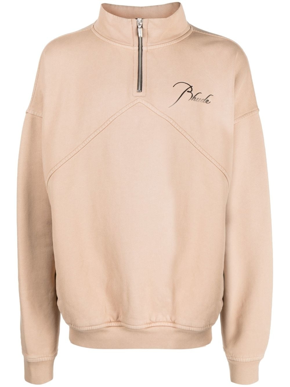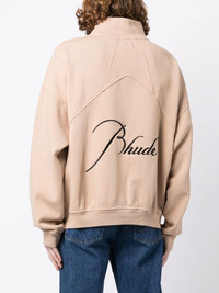 logo-embroidered high-neck sweatshirt sand beige cotton jersey knit ribbed trim silver-tone hardware panelled design embroidered logo at the chest embroidered logo to the rear high neck short front zip fastening drop shoulder long sleeves straight hem Made in United States Composition Body: Cotton 100% SIZE & FIT Model measurements Height 6 ft 3 in(1.9 m) Bust/Chest 34.64 in(88 cm) Hips 36.61 in(93 cm) Waist 27.55 in(70 cm) Measurement CHEST 51.96 in(132 cm) SLEEVE LENGTH 23.22 in(59 cm) LENGTH 25.19 in(64 cm) Shoulder Width 27.16 in(69 cm) FittingInformation This piece fits true to size. We recommend you get your regular size Cut for an oversized fit Made with a mid-weight fabric
