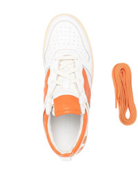 logo-patch leather sneakers white/orange calf leather panelled design logo patch to the rear perforated detailing round neck front lace-up fastening rubber sole Made in Italy Composition Outer: Calf Leather 100% Sole: Rubber 100% Lining: Calf Leather 100% SIZE & FIT Measurement HEEL 0.98 in(2.5 cm) Sole height 0.39 in(1 cm)