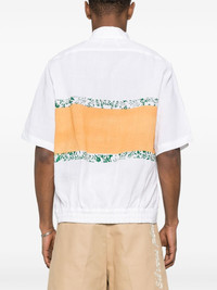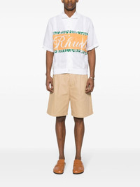 Convertible-Collar Pleated Logo-Print Linen Shirt