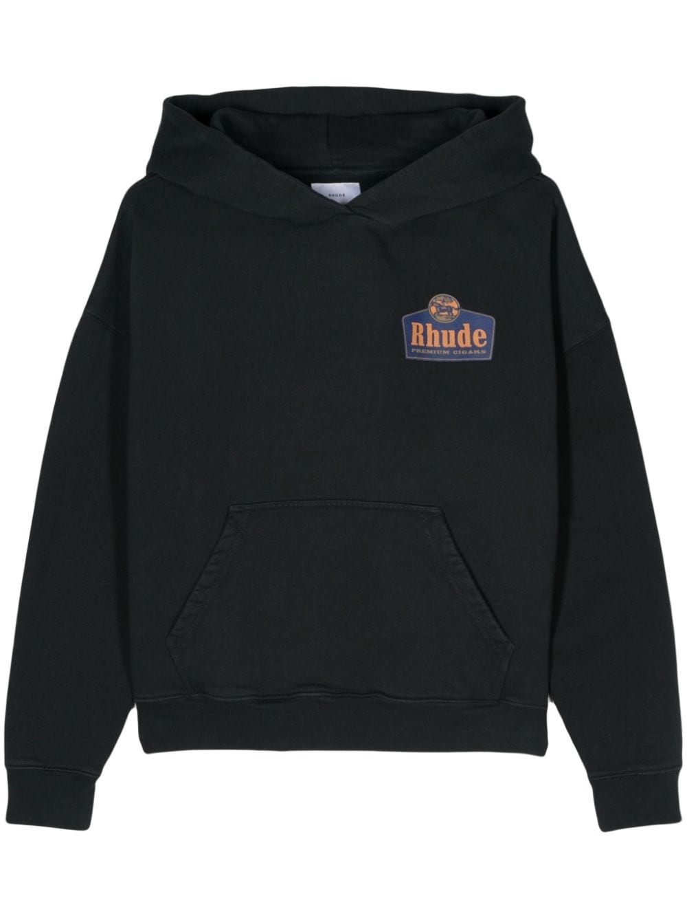 logo-print cotton hoodie Bold graphics and classic silhouettes lend a laid-back look to this cotton hoodie from Rhude. The Los Angeles-based label's logo adorns the chest, alluding to an eye-catching aesthetic. Highlights - Black - Cotton - Jersey texture - Slouchy hood - Drop shoulder - Long sleeves - Ribbed cuffs and hem - Logo print at the chest - Front pouch pocket - Logo print to the rear - Straight hem Made in United States Composition Cotton 100% SIZE & FIT Measurement CHEST 55 in(139.7 cm) SLEEVE LENGTH 22.99 in(58.4 cm) LENGTH 23.5 in(59.7 cm) WAIST 44.01 in(111.8 cm) Shoulder Width 28.5 in(72.4 cm) Washing instructions Machine Wash