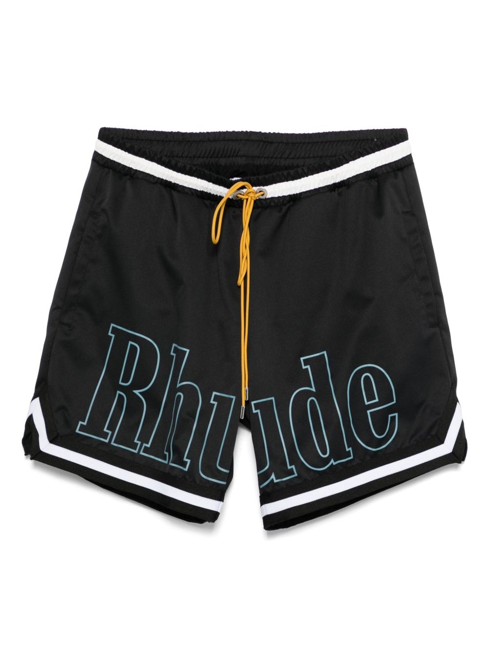 logo-print swim shorts Highlights - Black - Elasticated drawstring waistband - Two side inset pockets - Rear patch pocket - Be mindful to try on swimwear over your own garments. Made in United States Composition Lining: Nylon 85%, Spandex/Elastane 15% Outer: Polyester 100%