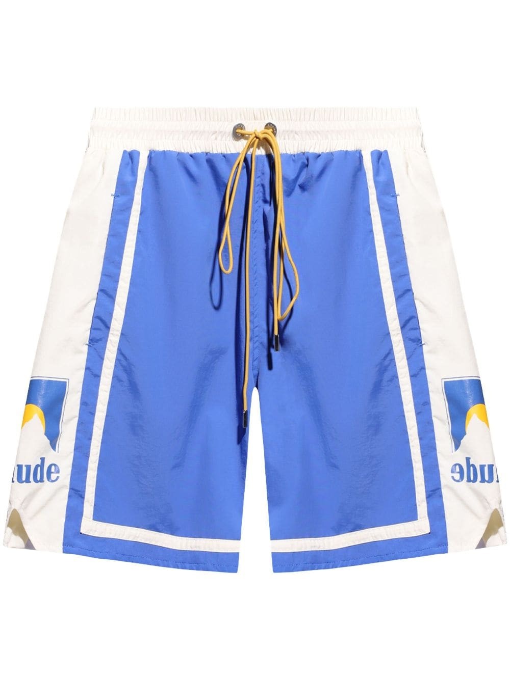 logo-print track shorts Highlights - Blue - White - Sunflower yellow - Mid-rise - Above-knee length - Drawstring fastening waist - Slip pockets to the sides Made in United States Composition Nylon 100%, Lyocell 100%