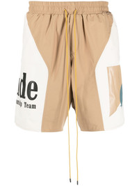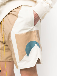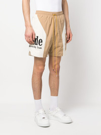 logo-print track shorts sand beige/cream white two-tone design logo print to the side graphic print to the side elasticated drawstring waistband short side slits two side inset pockets Made in United States Composition Outer: Nylon 100% Lining: Polyester 100% SIZE & FIT Model measurements Height 6 ft 1 in(1.85 m) Bust/Chest 35.82 in(91 cm) Hips 37.79 in(96 cm) Waist 29.13 in(74 cm) Washing instructions Dry Clean Only