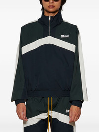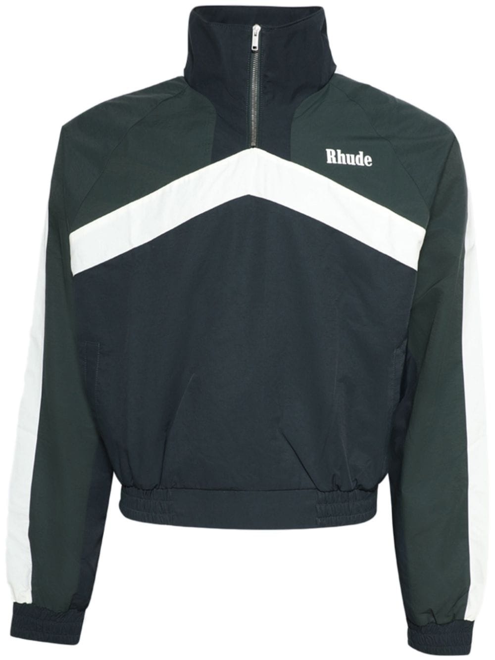 Motorsport track sweatshirt Highlights - Navy blue/dark green/white - Half front zip fastening - Stand-up collar - Long sleeves - Logo print at the chest - Two side welt pockets - Elasticated cuffs - Elasticated hem - Panelled design Imported Composition Polyester 100%