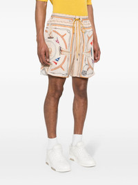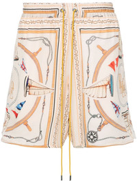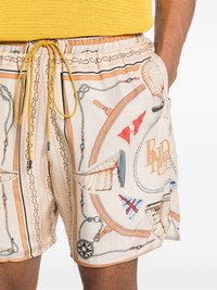 Nautica silk shorts Highlights - Beige/multicolour - Silk - All-over graphic print - Elasticated waistband - Two side slit pockets - Side slits - Rear patch pocket - Drawstring waist Made in United States Composition Outer: Silk 100% Lining: Lyocell 100% SIZE & FIT Model measurements Height 6 ft 2 in(1.87 m) Bust/Chest 37 in(94 cm) Hips 33.85 in(86 cm) Waist 27.95 in(71 cm) FittingInformation Designed for relaxed fit, offering a comfortable loose fit over the leg The elasticated waist allows for a comfortable fit Made from a lightweight non-stretch fabric This piece fits true to size – take your usual size