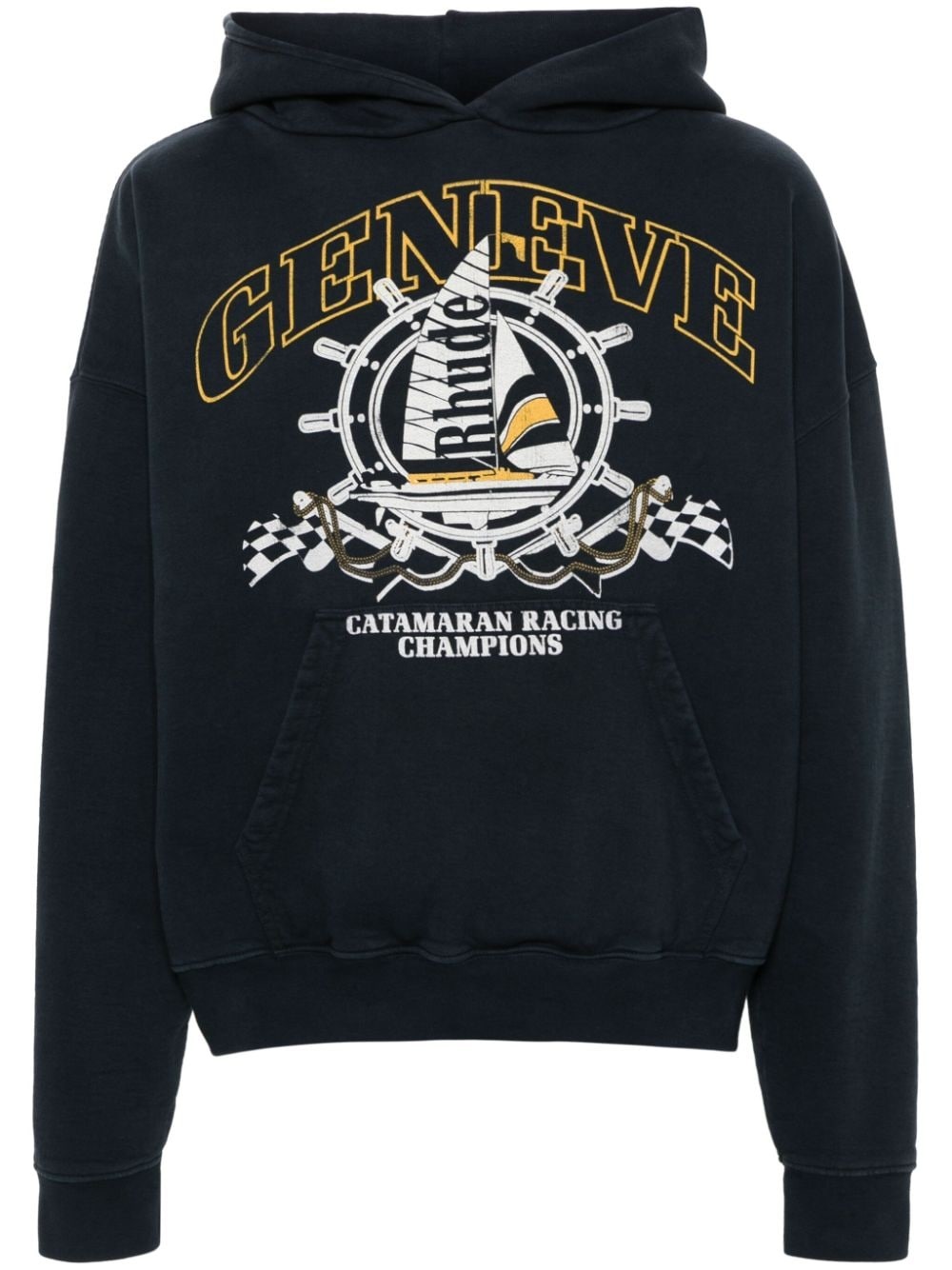 nautical-print cotton hoodie Highlights - Black/multicolour - Cotton - Jersey texture - Classic hood - Drop shoulder - Long sleeves - Ribbed cuffs and hem - Nautical print to the front - Front pouch pocket Made in United States Composition Cotton 100% SIZE & FIT Model measurements Height 6 ft 2 in(1.87 m) Bust/Chest 36.41 in(92.5 cm) Hips 35.43 in(90 cm) Waist 29.52 in(75 cm) FittingInformation Designed to be unstructured, offering a loose fit throughout The ribbed hem offers a close, comfortable fit Made from a midweight non-stretch fabric, this piece offers minimal elasticity when worn This piece fits true to size – take your usual size Measurement CHEST 51.96 in(132 cm) SLEEVE LENGTH 36.22 in(92 cm) LENGTH 22.83 in(58 cm) Shoulder Width 27.55 in(70 cm)