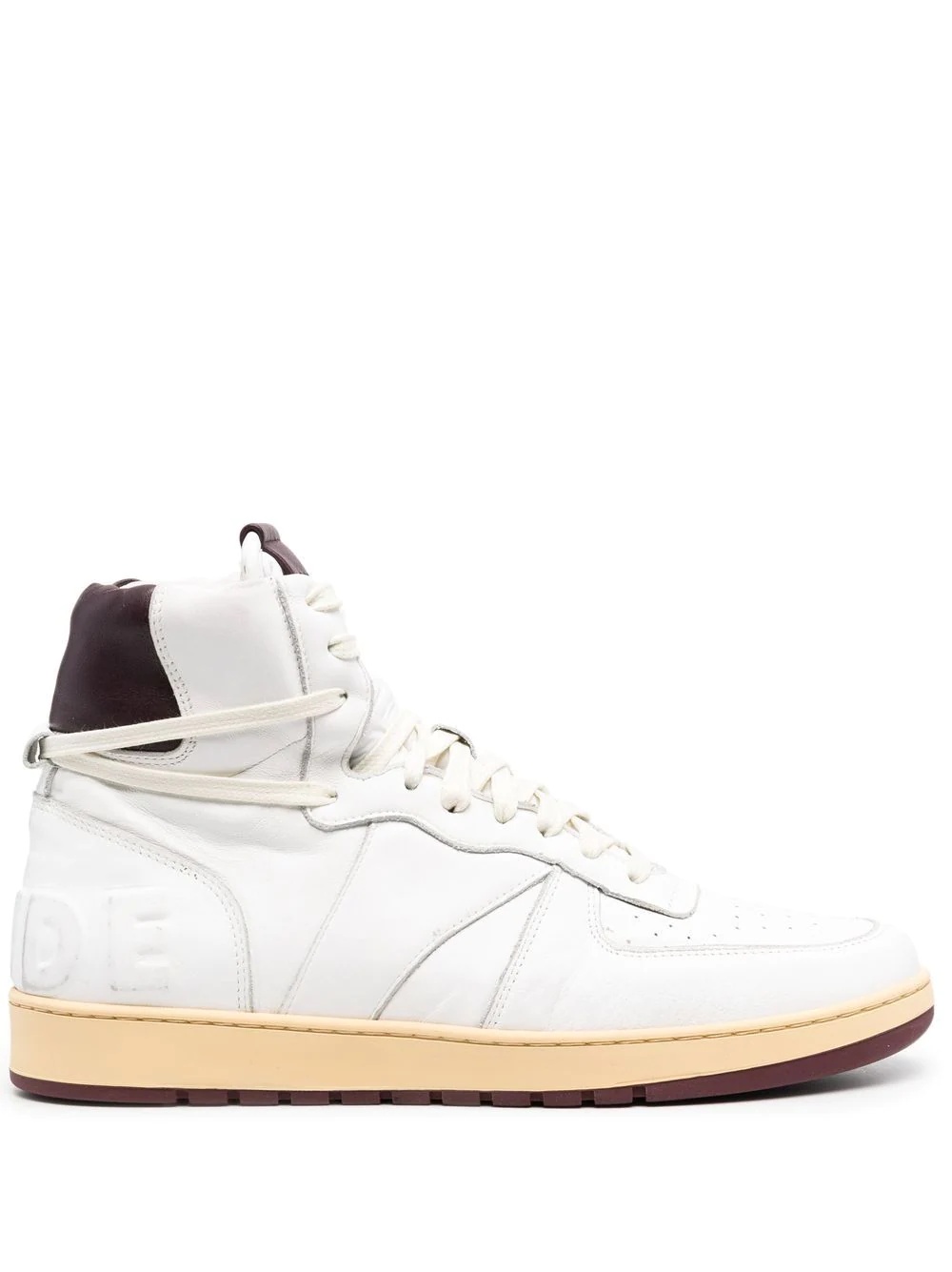 panelled high-top sneakers white leather panelled design colour-block design logo lettering front lace-up fastening flat rubber sole Made in Italy Composition Outer: Leather 100% Sole: Rubber 100% Lining: Leather 100% SIZE & FIT Measurement HEEL 1.18 in(3 cm) HEIGHT 5.11 in(13 cm) Sole height 0.78 in(2 cm)