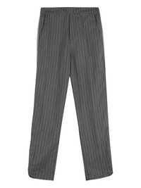 pinstriped cropped trousers Highlights - Heather grey - Rear elasticated hem - Two side slit pockets - Two rear patch pockets - Pressed crease Made in United States Composition Polyester 65%, Viscose 35%