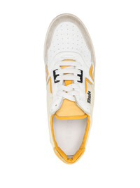 Racing low-top sneakers white/canary yellow calf leather calf suede colour-block panelled design embroidered logo to the side perforated toebox round toe front lace-up fastening flat rubber sole Made in Italy Composition Outer: Calf Leather 100%, Calf Suede 100% Sole: Rubber 100% Lining: Calf Leather 100% SIZE & FIT Measurement HEEL 1.37 in(3.5 cm) Sole height 0.98 in(2.5 cm)