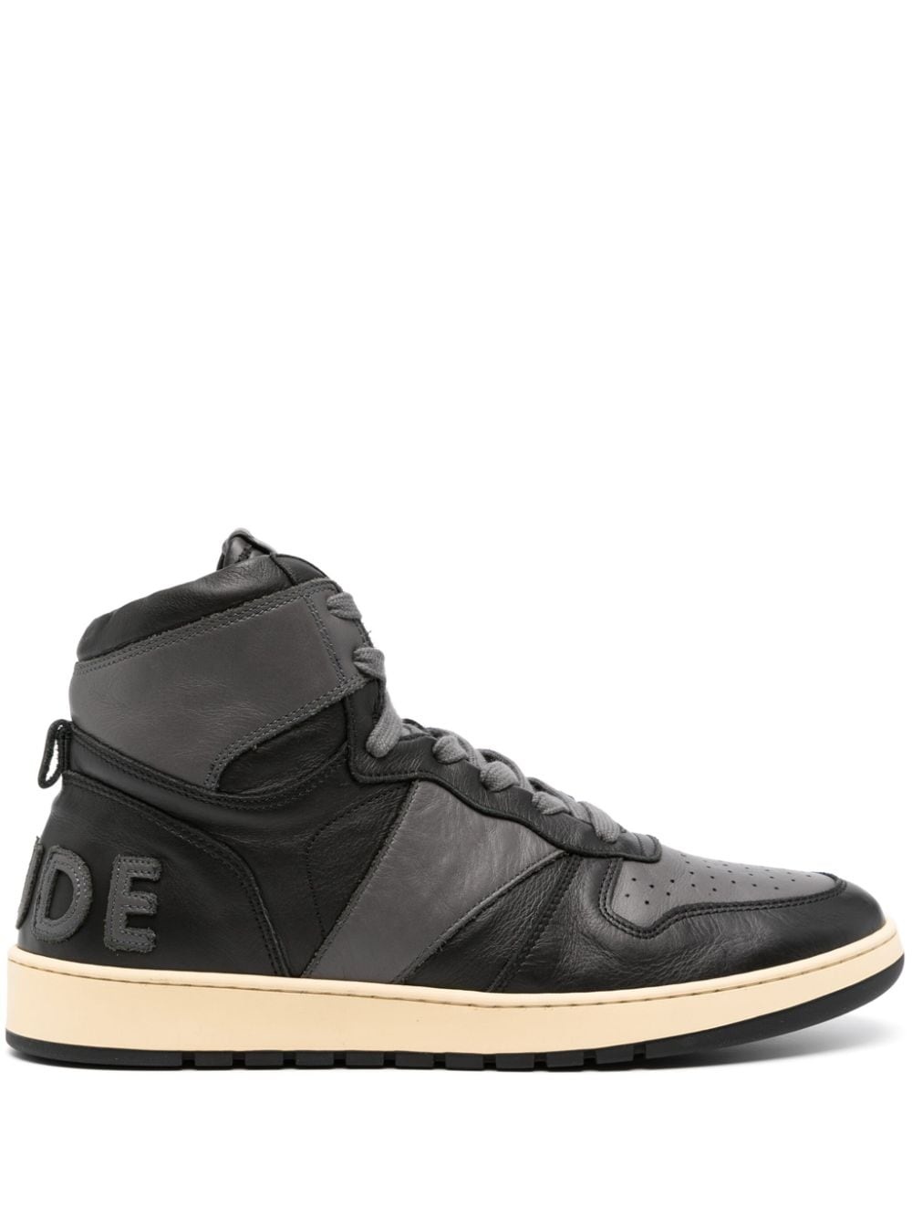 Rhecess high-top leather sneakers Highlights - Black/grey - Calf leather - Logo patch to the rear - Panelled design - Round toe - Front lace-up fastening - Rubber sole Made in Italy Composition Sole: Rubber 100% Lining: Calf Leather 100% Outer: Calf Leather 100% SIZE & FIT Measurement HEEL 1.57 in(4 cm) HEIGHT 3.93 in(10 cm) Sole height 0.78 in(2 cm)