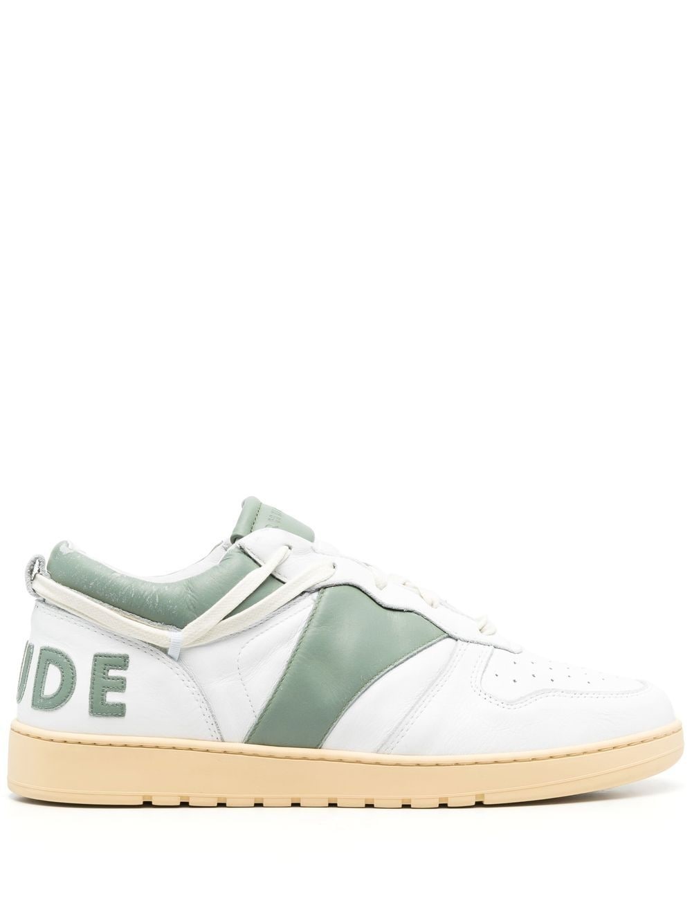 Rhecess low-top sneakers white/sage calf leather logo lettering logo patch at the tongue perforated detailing panelled design front lace-up fastening round toe flat rubber sole branded insole Made in Italy Composition Lining: Calf Leather 100% Sole: Rubber 100% Outer: Calf Leather 100% SIZE & FIT Measurement HEEL 0.98 in(2.5 cm) Sole height 0.39 in(1 cm)