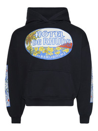 Rhude Hotel graphic-print hoodie Highlights - Black - Graphic print - Long sleeves - Kangaroo pocket - Drawstring hood Imported Composition Cotton 100%