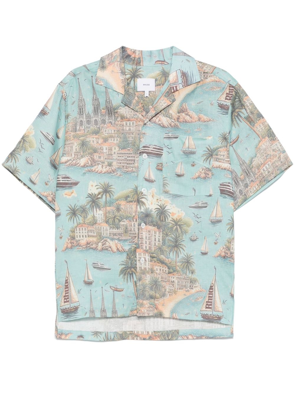 Sailing Map shirt Highlights - Sky blue - Front button fastening - Chest patch pocket - Side slits - All-over graphic print Made in United States Composition Linen/Flax 100% SIZE & FIT Model measurements Height 6 ft 2 in(1.87 m) Bust/Chest 38.18 in(97 cm) Hips 36.61 in(93 cm) Waist 29.13 in(74 cm) FittingInformation Designed to be unstructured, offering a loose fit throughout Made from a midweight non-stretch fabric