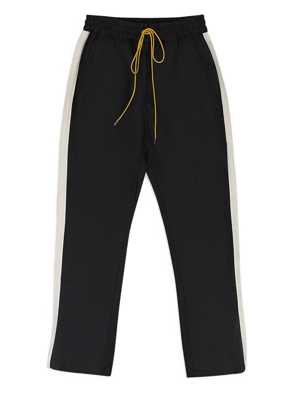 side-stripe track pants Highlights - Black - Side stripes - Drawstring waist - Welt pockets - Straight leg - Cuffed hems Made in United States Composition Cotton 100% Washing instructions Read Manufacturer Guidelines