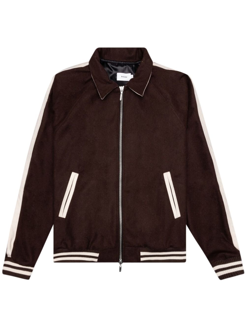 signature bomber jacket Highlights - Brown/white - Wool-cotton blend - Logo print to the rear - Stripe detailing - Classic collar - Front zip fastening - Two side welt pockets - Long sleeves - Ribbed cuffs and hem Imported Composition Cotton 95%, Wool 60%, Viscose 40%, Spandex/Elastane 5%