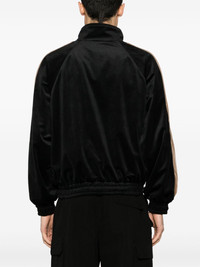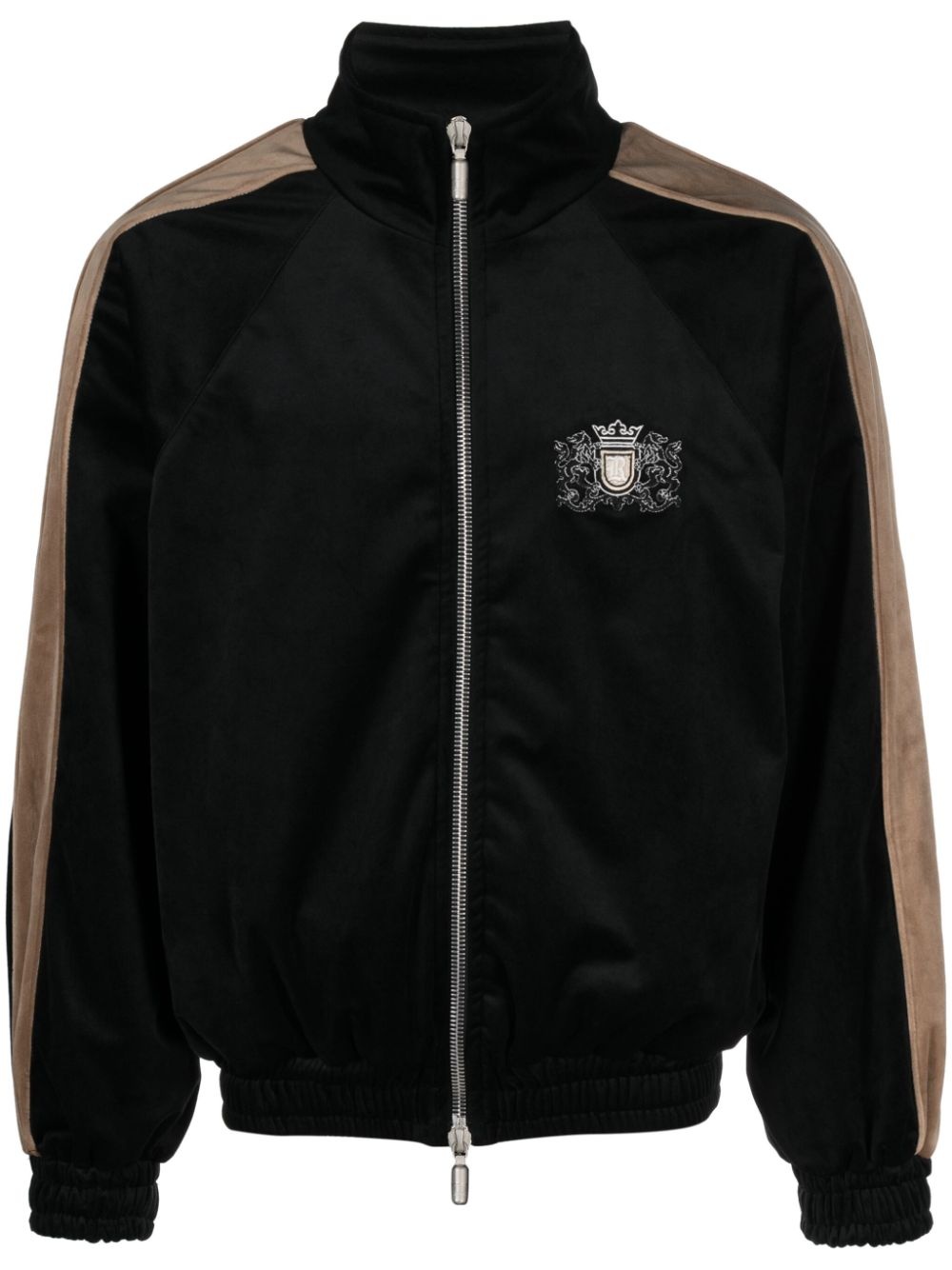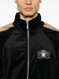 Sky Lounge velvet track jacket Rhude’s Sky Lounge track jacket is an elevated take on classic sportswear. It’s crafted from plush black velvet and adorned with an embroidered logo crest at the chest. Highlights - Black - Velvet - Colour-block panelled design - Crest motif - Branded zip puller - Stand collar - Front two-way zip fastening - Long sleeves - Elasticated cuffs - Two side welt pockets - Full lining - Elasticated hem Made in United States Composition Outer: Polyester 100% Lining: Polyester 100% SIZE & FIT Model measurements Height 6 ft 1 in(1.86 m) Bust/Chest 37.4 in(95 cm) Hips 36.22 in(92 cm) Waist 29.52 in(75 cm) FittingInformation Designed to be unstructured, offering a loose fit throughout The elasticated hem allows for movement and a comfortable fit Made from a midweight non-stretch fabric This piece fits true to size – take your usual size