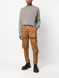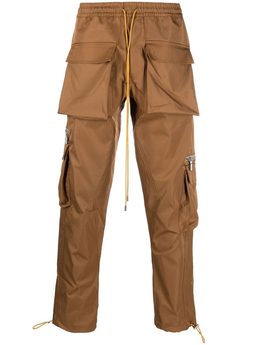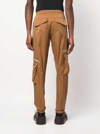 straight-leg cargo trousers camel brown cotton blend drawstring fastening two diagonal pockets to the sides two side flap pockets straight leg Imported Composition Cotton 50%, Polyester 50% SIZE & FIT Model measurements Height 6 ft 2 in(1.88 m) Bust/Chest 36.61 in(93 cm) Hips 35.82 in(91 cm) Waist 27.95 in(71 cm) FittingInformation This piece fits true to size. We recommend you get your regular size Cut for a slim fit Made with a mid-weight non-stretch fabric Washing instructions Dry Clean Only