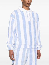 Striped Loop Terry polo shirt Highlights - Light blue/white/ - Cotton - Towelling finish - Vertical stripe pattern - Polo collar - Long sleeves - Elasticated cuffs and hem - Embroidered logo at the chest and rear - Short front press-stud fastening Made in United States Composition Cotton 100% SIZE & FIT Model measurements Height 6 ft 2 in(1.87 m) Bust/Chest 37 in(94 cm) Hips 33.85 in(86 cm) Waist 27.95 in(71 cm) Measurement CHEST 47.99 in(121.9 cm) SLEEVE LENGTH 22.99 in(58.4 cm) LENGTH 25 in(63.5 cm) WAIST 42 in(106.7 cm) Shoulder Width 25 in(63.5 cm) FittingInformation Designed for a relaxed fit, this polo shirt offers comfort and movement Made from a midweight non-stretch fabric, this piece offers minimal elasticity when worn This piece fits true to size – take your usual size Washing instructions Machine Wash
