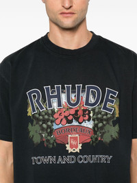 Town and Country T-shirt Highlights - Black - Cotton - Jersey texture - Logo print to the front - Graphic print to the front - Crew neck - Short sleeves - Straight hem Made in United States Composition Cotton 100% SIZE & FIT Model measurements Height 6 ft 2 in(1.87 m) Bust/Chest 37.79 in(96 cm) Hips 37.79 in(96 cm) Waist 30.31 in(77 cm) FittingInformation Designed to be unstructured, offering a loose fit throughout Made from a midweight non-stretch fabric, this piece offers minimal elasticity when worn