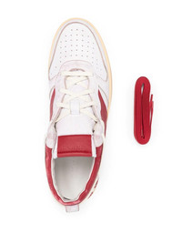 two-tone lace-up trainers bright-white/red leather two-tone design front lace-up fastening round toe chunky rubber sole Made in Italy Composition Lining: Leather 100% Outer: Leather 100% Sole: Rubber 100% SIZE & FIT Measurement HEEL 1.18 in(3 cm) Sole height 0.78 in(2 cm)