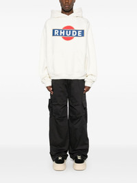 Vintage Racer cotton hoodie Highlights - Ivory white - Cotton - Jersey texture - Classic hood - Drop shoulder - Long sleeves - Ribbed cuffs and hem - Logo print to the front - Front pouch pocket - Straight hem Made in United States Composition Cotton 100% SIZE & FIT Model measurements Height 6 ft 2 in(1.88 m) Bust/Chest 35.43 in(90 cm) Hips 35.03 in(89 cm) Waist 27.95 in(71 cm) Measurement CHEST 48.81 in(124 cm) SLEEVE LENGTH 24.8 in(63 cm) LENGTH 24.4 in(62 cm) Shoulder Width 25.19 in(64 cm) FittingInformation Designed to be unstructured, offering a loose fit throughout Made from a midweight non-stretch fabric, this piece offers minimal elasticity when worn This piece fits true to size – take your usual size
