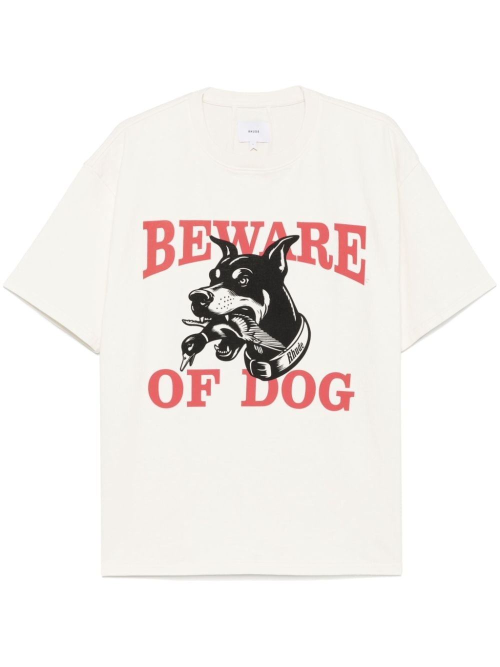 Warning logo T-shirt Highlights - Ivory white/black/red - Cotton - Jersey texture - Crew neck - Short sleeves - Graphic print to the front - Straight hem Made in United States Composition Cotton 100% SIZE & FIT Model measurements Height 6 ft 2 in(1.87 m) Bust/Chest 35.03 in(89 cm) Hips 34.64 in(88 cm) Waist 25.98 in(66 cm) Measurement CHEST 47.24 in(120 cm) SLEEVE LENGTH 19.29 in(49 cm) LENGTH 25.98 in(66 cm) Shoulder Width 21.65 in(55 cm) FittingInformation Designed for a boxy fit, intended for a loose fit throughout Made from a midweight non-stretch fabric, this piece offers minimal elasticity when worn