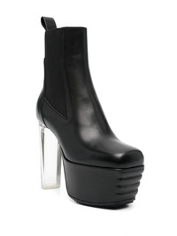 135mm Minimal Grill Beatle 65 boots Highlights - Black - Calf leather - Square toe - Elasticated side panels - Pull-tab at the heel - Branded insole - Transluscent 135mm block heel - Platform sole - Pull-on style Made in Italy Composition Sole: Calf Leather 100%, Rubber 100% Lining: Calf Leather 100% Outer: Calf Leather 100% SIZE & FIT Measurement CIRCUMFERENCE 9.44 in(24 cm) HEEL 5.31 in(13.5 cm) HEIGHT 6.29 in(16 cm) PLATFORM 2.75 in(7 cm)