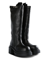 75mm knee-high platform boots Highlights - Black - Platform sole - Slip-on style - Pull-tab at the heel - Silver-tone hardware - Round toe Made in Italy Composition Outer: Leather 100% Lining: Leather 100% Sole: Rubber 100% SIZE & FIT Measurement HEEL 2.95 in(7.5 cm)