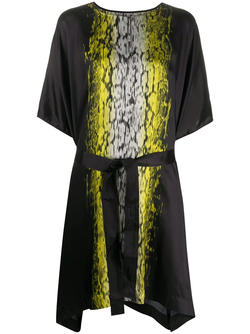 acid print T-shirt midi dress Highlights - Black/white/yellow - Round neck - Short sleeves - Belted waist - Asymmetric hem Made in Italy Composition Viscose 100% SIZE & FIT Model measurements Height 5 ft 10 in(1.79 m) Bust/Chest 34.25 in(87 cm) Hips 37 in(94 cm) Waist 25.19 in(64 cm) FittingInformation This piece fits true to size. We recommend you get your regular size Cut for a loose fit. Comes with an adjustable belt for a flexible fit at the waist Made with a mid-weight non-stretch fabric Washing instructions Dry Clean Only