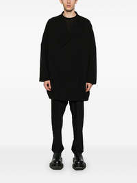 Arrowhead JMF coat Highlights - Black - Double-breasted button fastening - Two side slit pockets - Internal zip-fastening pockets - American rear vent Made in Italy Composition Outer: RWS Virgin Wool 100%, Buffalo Horn 100% Lining: Cotton 100%, Cupro 100% SIZE & FIT Model measurements Height 6 ft 2 in(1.87 m) Bust/Chest 36.41 in(92.5 cm) Hips 35.43 in(90 cm) Waist 29.52 in(75 cm) FittingInformation Designed for an oversized fit, offering additional room throughout The vented hem offers movement at the rear Made from a midweight non-stretch fabric