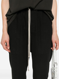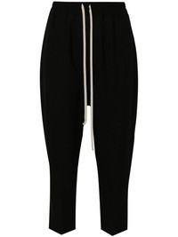 Astaires cropped virgin wool trousers Highlights - Black - Virgin wool - Grain de poudre - Elasticated drawstring waistband - Two side inset pockets - Pressed crease - Drop crotch - Two rear flap pockets - Cropped leg Made in Italy Composition Virgin Wool 100%, Buffalo Horn 100% SIZE & FIT Model measurements Height 5 ft 11 in(1.8 m) Bust/Chest 32.67 in(83 cm) Hips 36.22 in(92 cm) Waist 25.19 in(64 cm) FittingInformation Designed with a dropped crotch, these trousers allow for a close fit at the waist with a loose and relaxed fit through the leg The elasticated waist allows for a comfortable fit Made from a midweight non-stretch fabric This piece fits true to size – take your usual size