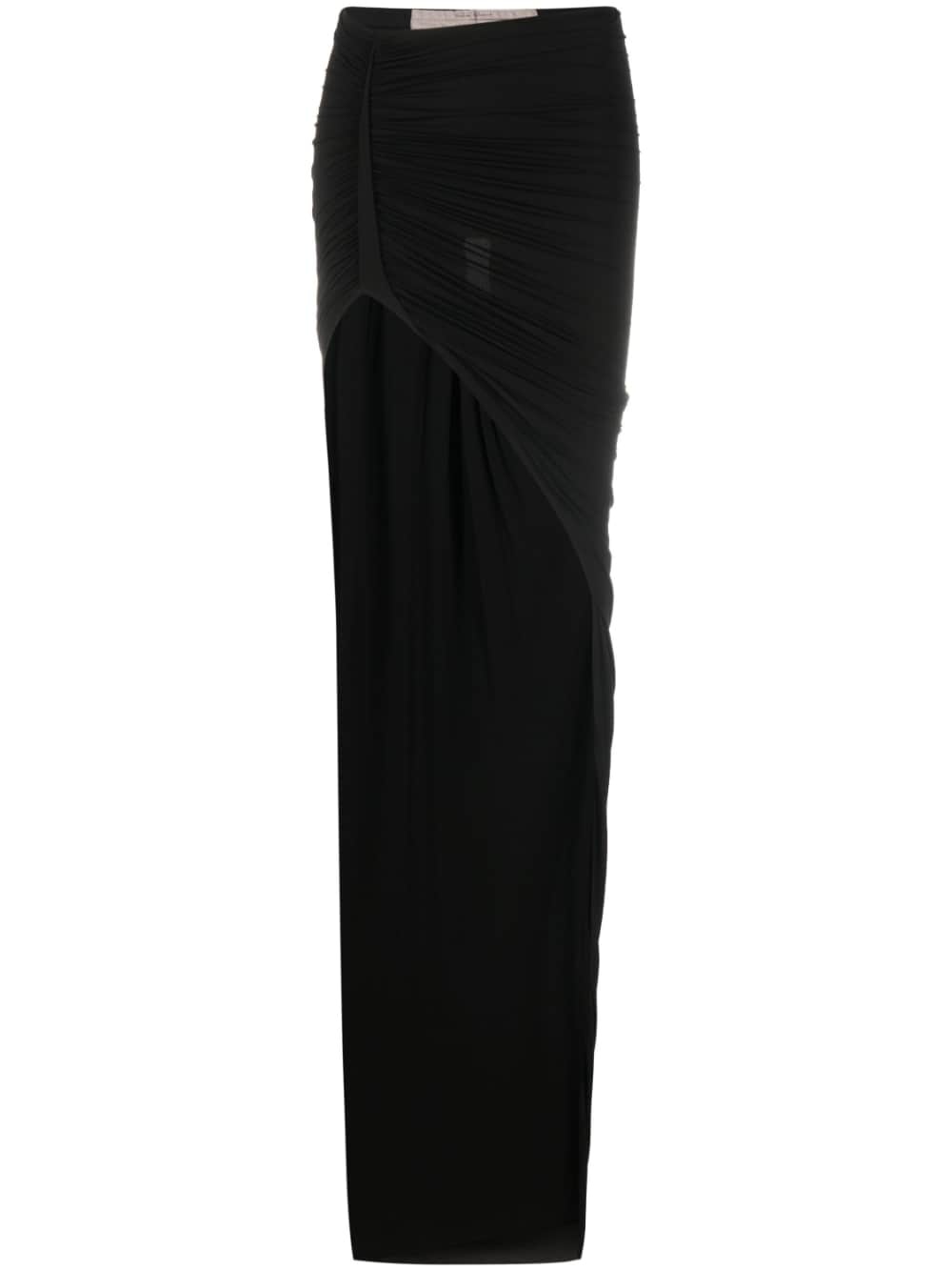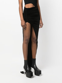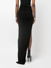 asymmetric maxi skirt Highlights - Black - Stretch-design - Asymmetric design - Ruched detailing - Side slit - High-waisted - Floor-length Made in Italy Composition Cupro 92%, Spandex/Elastane 8% SIZE & FIT Model measurements Height 5 ft 11 in(1.8 m) Bust/Chest 31.49 in(80 cm) Hips 36.61 in(93 cm) Waist 24.4 in(62 cm) FittingInformation Designed with an asymmetric hem, this skirt is intended to be worn high on the waist Made from a midweight stretch fabric, this piece offers elasticity and flexibility when worn This piece fits true to size – take your usual size Washing instructions Hand Wash